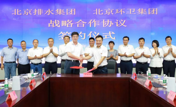 7月20日,北京排水集團(tuán)與北京環(huán)衛(wèi)集團(tuán)簽署戰(zhàn)略合作協(xié)議。北京環(huán)衛(wèi)集團(tuán)黨委書(shū)記、董事長(zhǎng)高蹤陽(yáng),黨委副書(shū)記、總經(jīng)理何亮,北京排水集團(tuán)黨委書(shū)記、董事長(zhǎng)張建新,黨委副書(shū)記、總經(jīng)理張榮兵,副總經(jīng)理鄺諾參加簽約儀式。