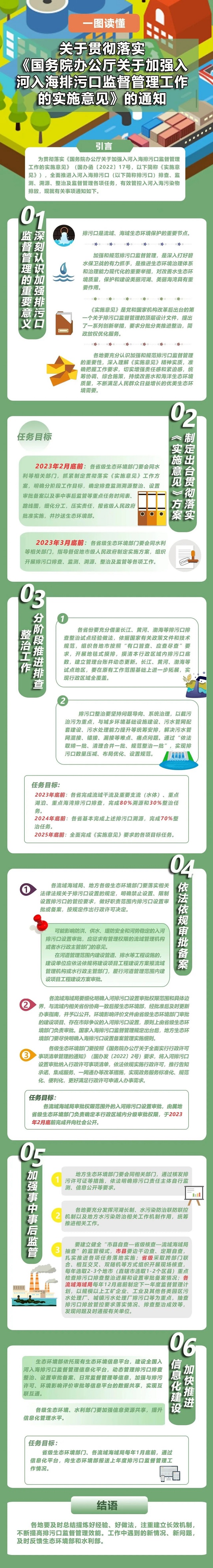 《通知》是貫徹落實《國務院辦公廳關于加強入河入海排污口監(jiān)督管理工作的實施意見》(以下簡稱《實施意見》)的重要舉措,從深刻認識加強排污口監(jiān)督管理的重要意義、制定出臺貫徹落實《實施意見》方案、分階段推進排查整治工作、依法依規(guī)審批備案、加強事中事后監(jiān)管、加快推進信息化建設六個方面,明確細化了要求。