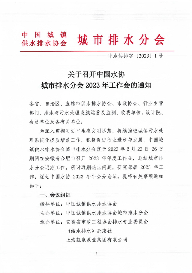 關于召開中國水協城市排水分會2023年工作會的通知