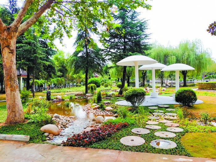 行走在江蘇省新沂市第一中學,一個個綠地小園林映入眼簾,園內河水清澈、水草豐茂、鮮花綻放。誰能想到,這里曾經水環境、水生態、水安全等隱患重重,不僅水質差、景觀環境差,還容易內澇。2020年12月,新沂市結合海綿城市試點建設要求,啟動第一中學景觀工程(海綿城市建設項目),于2021年7月竣工,總建設面積約19公頃,其中海綿城市建設面積約3.3萬平方米。項目位于試點區“泛水環”主干水系周邊,是新沂市多維水環工程的重要節點。