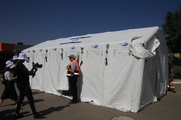 展示應急衛生系統帳篷的搭建