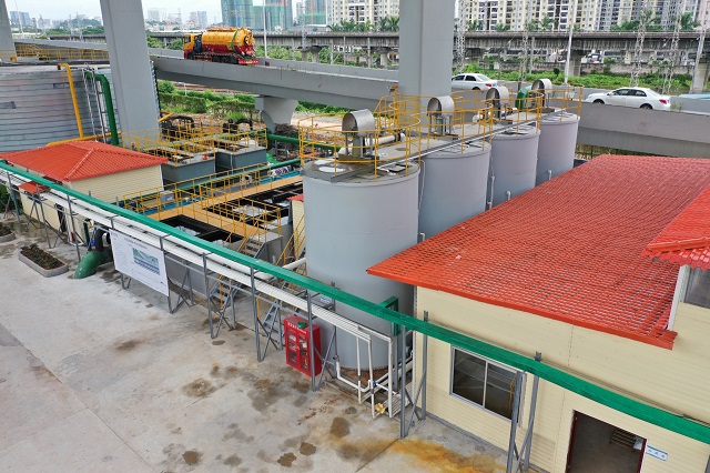 節(jié)約用地是本項(xiàng)目處理工藝的重要亮點(diǎn)。易新貴介紹說(shuō),天河區(qū)屬于中心城區(qū),土地資源緊缺,一體化設(shè)備高度集成,占地面積小,非常適合城市中的污水處理需求,“這里是高架橋旁,原來(lái)是用來(lái)停放城管功能用車,用來(lái)做一體化污水處理廠,大大節(jié)約了用地成本,也避免了選址難題。”