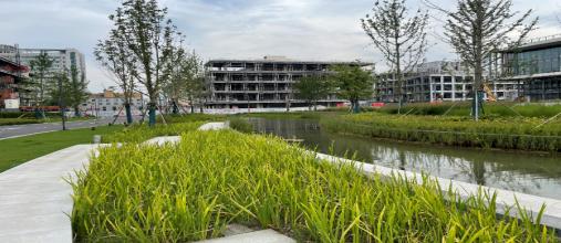 通過“園區(qū)+海綿”,打造“碧水環(huán)洲”的花園式科技園區(qū)。項(xiàng)目應(yīng)用海綿技術(shù)包括: