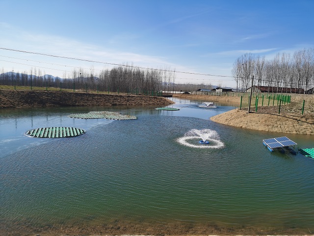 嘉祥縣水務局副局長王新榮介紹:“我們在每一處坑塘都配套了太陽能曝氣設備,增加水氧含量,打造‘凈水、增氧、控藻’的多功能復合生態系統。同時,修建回流井,在陰雨天及夏季高溫天氣啟動運行,補充水體流通,促進水系循環,提升水體自凈能力?!?br />