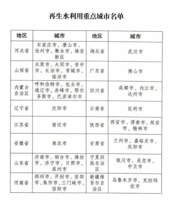 為加快推進再生水利用,持續提升水資源節約集約利用水平,近日,國家發展改革委、住房城鄉建設部、水利部以缺水地區、水環境敏感地區、水生態脆弱地區為重點,確定50個再生水利用重點城市,力爭通過實施再生水利用三年行動,探索形成一批示范效果好、帶動作用強、持續可推廣的經驗和做法。