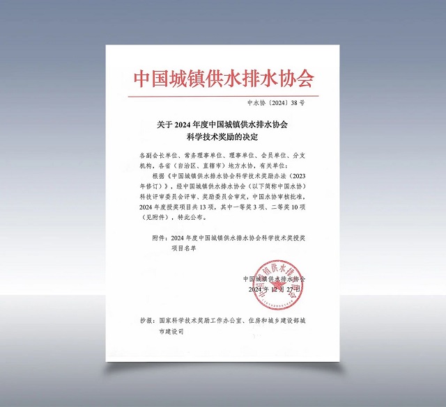 中國(guó)城鎮(zhèn)供水排水協(xié)會(huì)科學(xué)技術(shù)獎(jiǎng)作為城鎮(zhèn)供水排水行業(yè)最具權(quán)威的獎(jiǎng)項(xiàng),旨在推動(dòng)城鎮(zhèn)供水排水行業(yè)科技創(chuàng)新與技術(shù)進(jìn)步,加速科技成果轉(zhuǎn)化,激勵(lì)在城鎮(zhèn)供水排水行業(yè)科技進(jìn)步中做出突出貢獻(xiàn)的單位,本年度共評(píng)出獲獎(jiǎng)項(xiàng)目13項(xiàng),其中一等獎(jiǎng)3項(xiàng)、二等獎(jiǎng)10項(xiàng)。